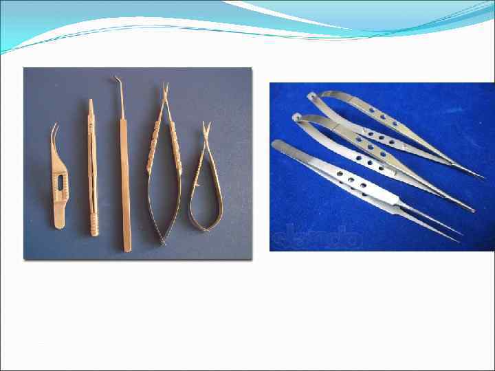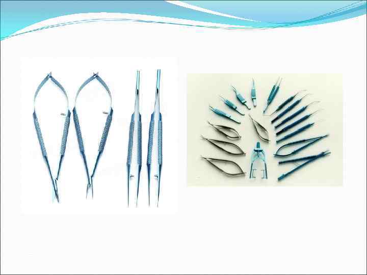 Требования к инструментарию: Тонкие рабочие поверхности Обеспечение точности движений хирурга Легкость Виды инструментов: Разъединяющие Удерживающие Вспомогательные