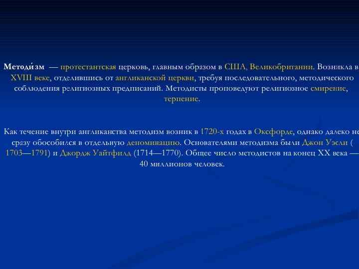 * Основатели Джон Уэсли (1703— 1791) и Джордж Уайтфилд (1714— 1770)