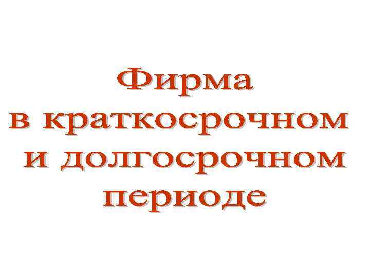 Краткосрочный период промежуток времени, в течение которого фирма не может изменить количество используемых в производстве ресурсов, а изменение объема выпуска достигается за счет маневрирования имеющимися. В этот период растущий спрос может быть удовлетворен только за счет складских запасов. Граница периодов зависит от отрасли – от месяца до 10 лет и более.