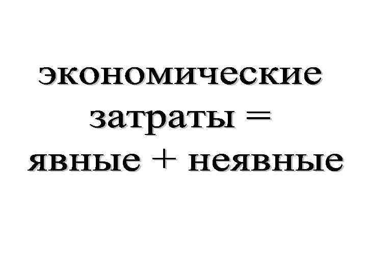 Явные затраты • Денежные платежи собственникам ресурсов, используемых в производстве • Затраты ПРОШЛЫХ периодов • База для прогнозирования (при неизменных ценах)