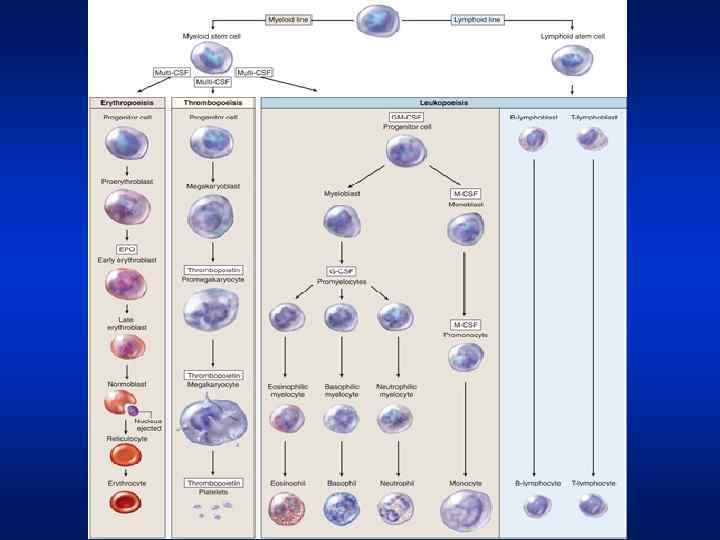 ОСОБЛИВОСТІ ЕРИТРОПОЕЗУ Еритробластична стволова клітина Пронормобласт Еритропоетин Ранній нормобласт Поліхроматофільний нормобласт 5 діб Три мітотичних ділення Початок гемоглобінізації Пізній нормобласт Ретикулярна клітина Ретикулоцит Еритроцит Тривалість життя еритроциту – 120 діб Містить ретикулярнофіламентозну субстанцію, лізис якої відбувається протягом 24 годин