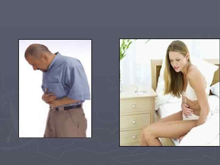 «Симптом диспепсії плюс розлад стільця» ► Проявляється скаргами: відчуття тиску, вздуття живота, особливо після їжі, нудота, відчуття бурчання, переливання в животі, які виникають в результаті порушення процесів травлення в кишківнику, прискорення пасажу по тонкому кишківнику, а також порушення процесів всмоктування в кишківнику. Іноді при тяжкому перебізі ентериту одразу прийомі їжі виникають слабкість, головокружіння, запаморочення. Характерна поліфекаліягда при: загальна кількість калових мас за добу може сягати 1, 5 -2 кг. Іноді виникають різкі поклики до дефекації, а після дефекації – різка слабкість, яка супроводжується холодним потом, тремтінням рук. При середньому ступені важкості та при відсутності супутнього коліта може виникати навіть закреп. Характерна непереносимість молока: після його прийому посилюється метеоризм, пронос. Загострення захворювання викликає прийом гострої їжі, яка містить велику кількість жирів та вуглеводів, переїдання.