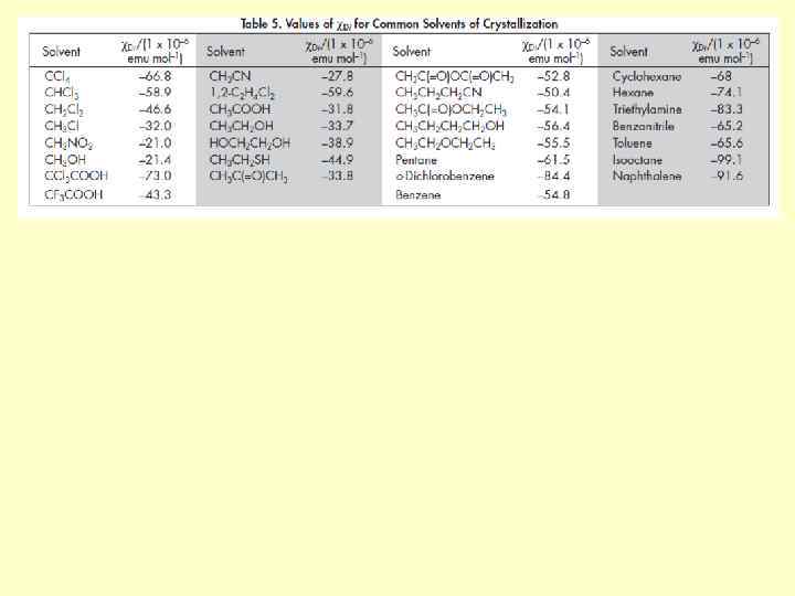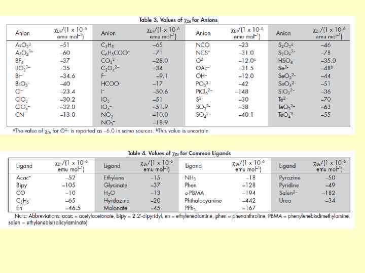 Температурно-незалежний парамагнетизм • Причина: примішування до хвильової функції основного стану хвильових функцій термічно незаселених збуджених станів, зв'язаних з основним орбітальним оператором • Приклади: низькоспінові комплекси кобальту(ІІІ), перманганати, хромати Для сполук кобальту(ІІІ) перший збуджений синглетний стан 1 T 1 лежить вище основного стану 1 A 1 на 16000 - 21000 см-1 [Co(NH 3)6]3+ E = 21000 см-1 ТНП = 4/ (1 T 1) = 1, 95· 10 -4 см 3 моль-1