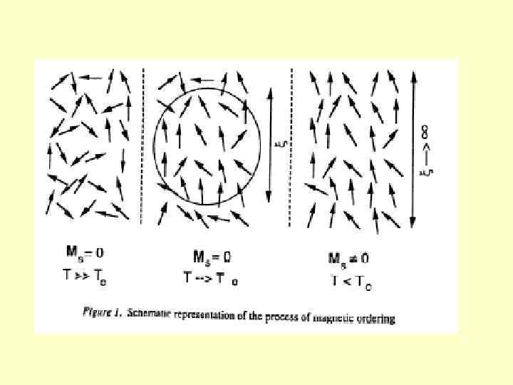 Феромагнетизм • Кооперативний магнетизм, що призводить до дальнього упорядкування, при якому за рахунок обмінної взаємодії реалізується тенденція спінів до паралельного упорядкування по всій 3 D-структурі • можуть виявляти (а можуть і ні) спонтанну постійну магнетизацію (при Н = 0) • на макроскопічному рівні енергетично більш вигідним виявляється сегрегація на домени (10 -8 - 10 -12 м 3 з 1021 - 1017 атомів). • критична температура: TС (температура Кюрі) • вище TС - парамагнетик