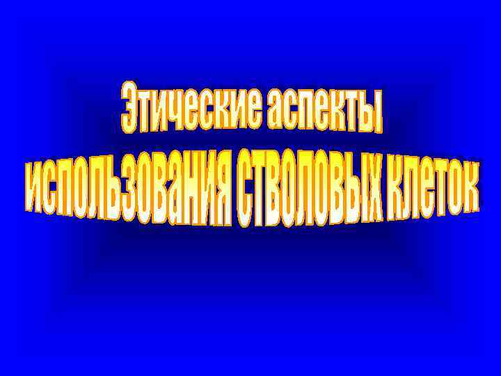 Этические проблемы Лучшим источником стволовых клеток по прежнему остаются: -кровь из пупочного канатика; -ткань зародыша или ткань плода на различных стадиях его развития. Европейская группа по этике на первый план выдвинула проблему прав женщин, которые могут оказаться под особым «давлением» в случае получения стволовых клеток из указанных источников. -добровольного и информированного согласия доноров и получателей клеток; -оценки приемлемого риска; -анонимности доноров; -охраны и безопасности клеточных банков; -конфиденциальности; -коммерциализация и компенсации участникам процесса… -проблема смертности и долголетия, терапии «улучшений» -статус человеческого эмбриона…