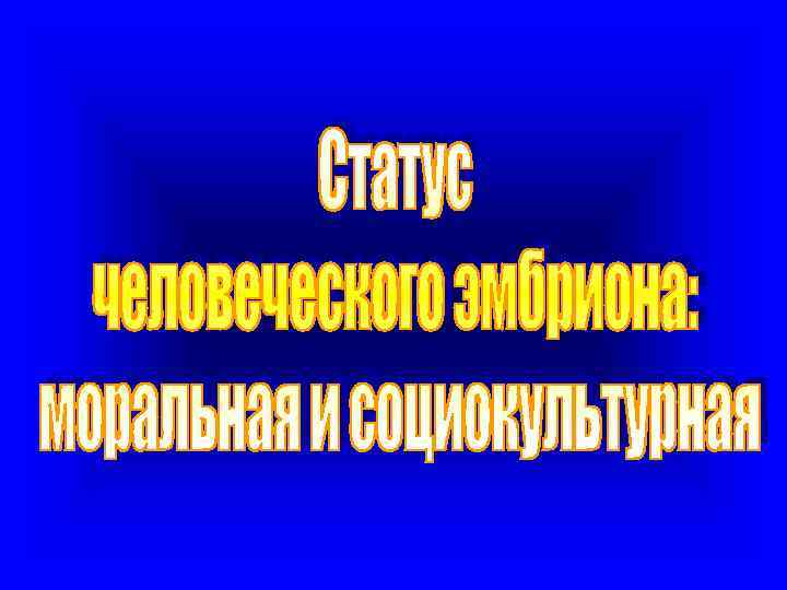 Эмбрионы, способ получения и статус 1. 2. 3. 4. 5. 6. 7. 8. Человеческий эмбрион не может и не должен стать подобием лабораторного животного. Если мы ценим человеческую жизнь, то мы должны ценить ее во всех проявлениях и отвергать любые злоупотребления человеческими органами и тканями. Создание и терапевтическое использование эмбрионов совместимо с принципом ценности и уважения человеческих органов и человеческого достоинства, при условии, что цели такого использования этичны и гуманны. Терапевтическое клонирование при использовании эмбрионов на ранней стадии развития (до 14 -ти дней после оплодотворения) совместимо с принципом уважения человеческой жизни, ибо направлено на облегчение страданий и спасение жизней людей, принцип уважения которых мы отстаиваем. Создание и использование человеческих эмбрионов должно быть строго регламентировано, находится под постоянным контролем и проводится с полного согласия родителей (доноров) биологического материала. Пожертвования такого биологического материала должно носить в большей степени альтруистический характер, не исключая определенной оплаты. Однако необходимо предпринять все меры против коммерциализации и финансового стимулирования этого процесса. Создание и использование человеческих эмбрионов должно иметь только гуманные медицинские цели и не может проводится для тривиальных, косметических и немедицинских целей.