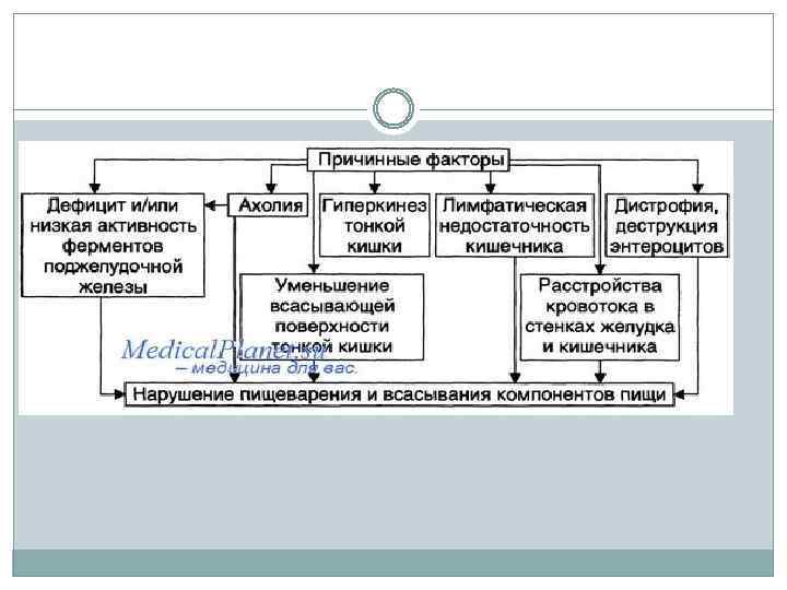 Синдром мальабсорбция Мальабсорбция ( «плохое всасывание» ) – это клинический синдром, обусловленный нарушением пищеварения (мальдигестия) и собственно всасывания (мальабсорбция) в тонкой кишке одного или нескольких питательных веществ, проявляющийся хронической диареей, расстройством питания и метаболическими сдвигами в организме.