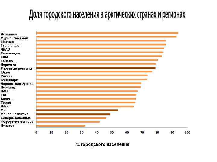 Структура ВРП арктических территорий, 2005 г, % Полярные страны ресурсного фронтира Россия США Канада Горная отрасль и нефтегазовый сектор Рыбный промысел Добыча других природных ресурсов Переработка ресурсов Строительство Общественный (государственный) сектор Другие услуги Остаток 56, 9 33, 2 27, 7 Гренландия и Фарерские острова (Дания) 3, 2 0, 6 1, 3 0, 6 0, 1 0 0, 4 4, 4 2 5 9, 1 22, 1 0, 6 Полярные страны зрелой экономики услуг и общественного сектора Швеция Норвегия Исландия Финляндия 7, 5 1 0, 8 10, 5 2, 4 0 3 5 0, 9 4, 7 1, 4 0, 1 4, 7 0 5, 8 7, 2 5, 2 4, 8 13, 3 5, 4 26, 9 8 28, 7 7, 2 29, 9 5, 4 32, 6 6, 9 40, 5 9, 6 23, 8 6, 8 24, 8 31, 3 0, 5 34, 8 0, 4 38, 9 2, 1 36, 6 7, 7 37, 4 3, 1 50, 1 5, 5 37, 7 11, 8