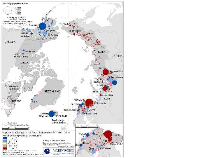 Экономические тенденции • • • В 2009 году ВРП Арктики 179, 925 млрд. Это 95% финской экономики, размер Филиппин, Нигерии, Сингапура. Подушевой ВРП в 2009 году 49900 долл. Арктическая экономика росла на 31% с 2000 до 2009 года. Но численность отставала, поэтому на 30% рост подушевого ВРП за этот период. Китай, Индия, Япония, Корея являются главными драйверами растущей интернализации арктической экономики. Экономический феномен Арктического Средиземноморья. Глобальное потепление и хозяйственная деятельность. Чем меньше сообщество, тем сильнее выражена гендерное распределение экономической деятельности. Неравномерность экономического роста по Арктике. Расхождения между подушевым ВРП и подушевым личным доходом. От 61% на Аляске до 36% в арктической России.
