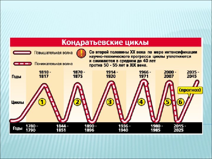 ТЕХНОЛОГИЧЕСКИЕ УКЛАДЫ VI технологический уклад • Биотехнологии • Нанотехнологии • Вложения в человека • Новое природопользование • Новая медицина О. Тоффлер (1928) «Футурошок» V технологический уклад • Компьютеры • Малотоннажная химия • Телекоммуникации • Электроника • Интернет IV технологический уклад • Массовое производство • Автомобили • Самолеты • Тяжелое машиностроение • Большая химия