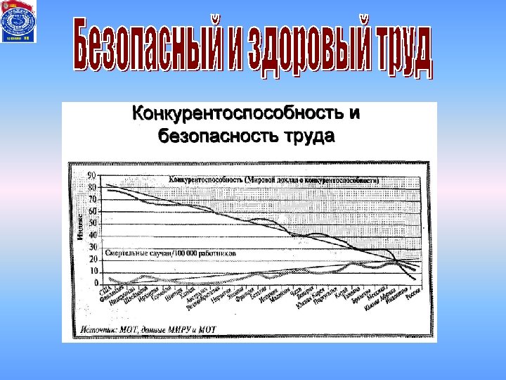 В мире за один год происходит: • Более 2 200 производстве 000 смертей на • 160 000 заболеваний, связанных с производством • 270 000 несчастных случаев • Стоимость несчастных случаев и профессиональных заболеваний более 1 250 000 4% потерь ВВП 000 $ в год,