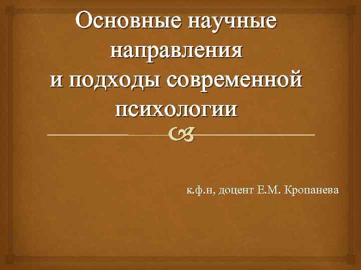 Основные научные направления и подходы современной психологии к. ф. н, доцент Е. М. Кропанева