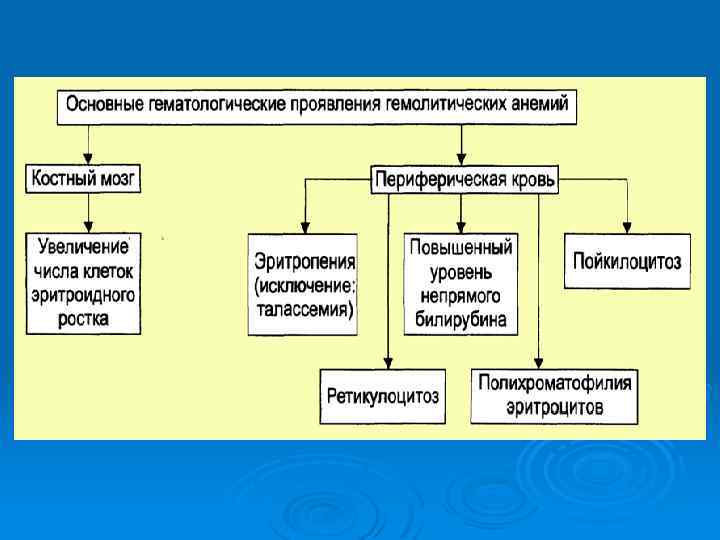 Гемолитические анемии В обширную группу гемолитических анемий входят разнообразные заболевания, объединенные одним общим признаком – укорочением продолжительности жизни эритроцитов. Механизм развития этого вида анемии связан с повышенным разрушением (гемолизом) эритроцитов. В результате повышенного гемолиза эритроцитов в крови накапливается большое количество непрямого билирубина, что приводит к развитию желтухи.