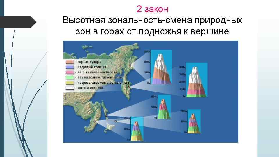 Но, если горный массив располагается своими подножиями в зоне степей или пустынь, тогда несмотря на достаточную высоту, в нем вертикальный пояс тундр чаще всего вовсе выпадает и пояс лесной сменяется кверху поясом горных лугов.