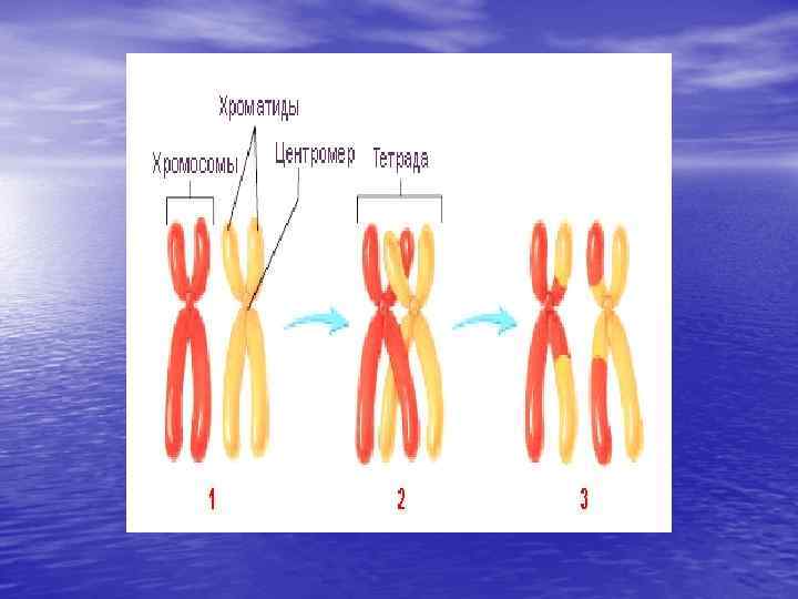 • При мейозе происходит: • 1. Уменьшение числа хромосом от диплоидного до гаплоидного сопровождается расхождением аллелей, так что каждая гамета несет только один аллель по данному локусу. • 2. Расположение бивалентов в экваториальной пластинке веретена в метафазе I и хромосом в метафазе II определяется случайным образом. Последующее их разделение в анафазах I и II соответственно создает новые комбинации аллелей в гаметах. • Это НЕЗАВИСИМОЕ РАСПРЕДЕЛЕНИЕ приводит к случайному распределению материнских и отцовских хромосом между дочерними ядрами. • 3. В результате образования хиазм в профазе I между гомологичными хромосомами часто происходит кроссинговер , ведущий к образованию новых комбинаций аллелей в половых клетках. При этом распадаются старые группы сцепления генов и возникают новые. Мейоз тасует карты и сдает их