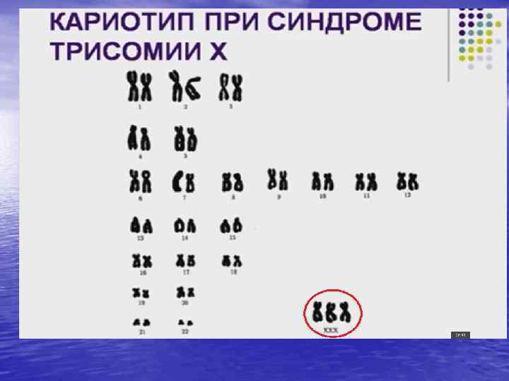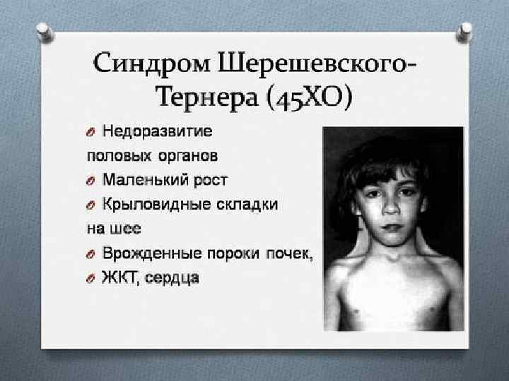 В кариотипе 45 хромосом – из половых хромосом присутствует одна Х-хромосома
