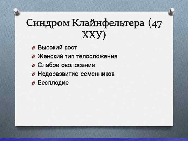 Болезни сцепленные с Y-хромосомой • На Yp 1 a (в коротком плече Y- хромосомы) локализуется ген SRY , кодирующий фактор развития яичка. Этот ген клонирован; он содержит 900 нуклеотидов и характеризуется высоким консерватизмом у разных млекопитающих. Мутации гена SRY изменяют генетический пол и нарушают формирование гонадного пола.