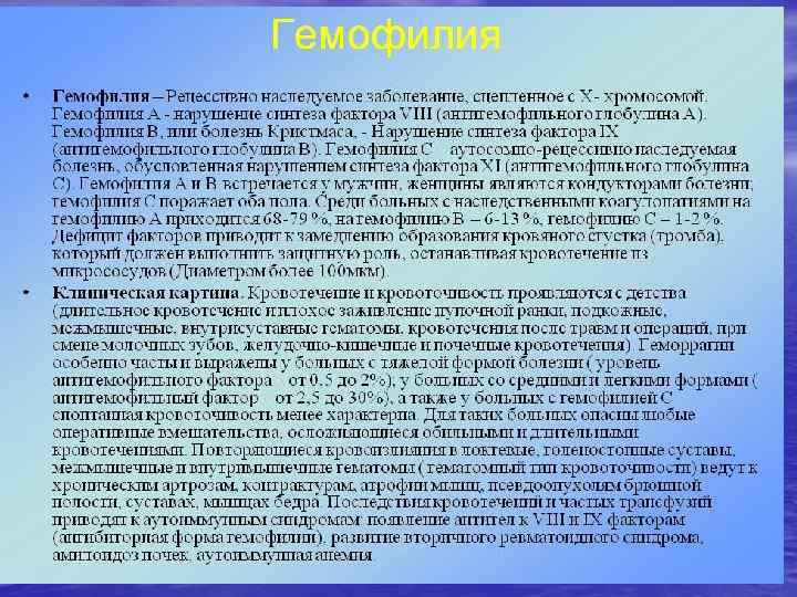 • Насле дственные заболева ния — заболевания, возникновение и развитие которых связано с дефектами в программном аппарате клеток, передаваемыми по наследству через гаметы.