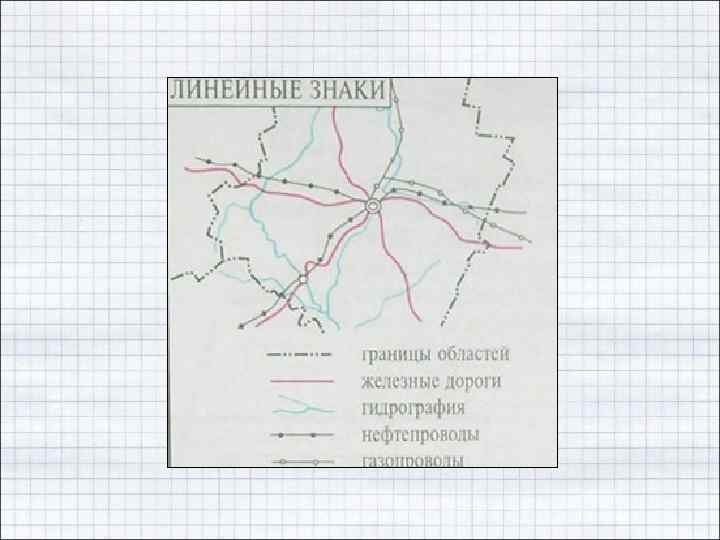 способ линейных знаков (method of line symbols) - изображение объектов, локализованных на линиях (напр. , административных границ, дорог, тектонических разломов), с помощью линий разного цвета, ширины, рисунка;