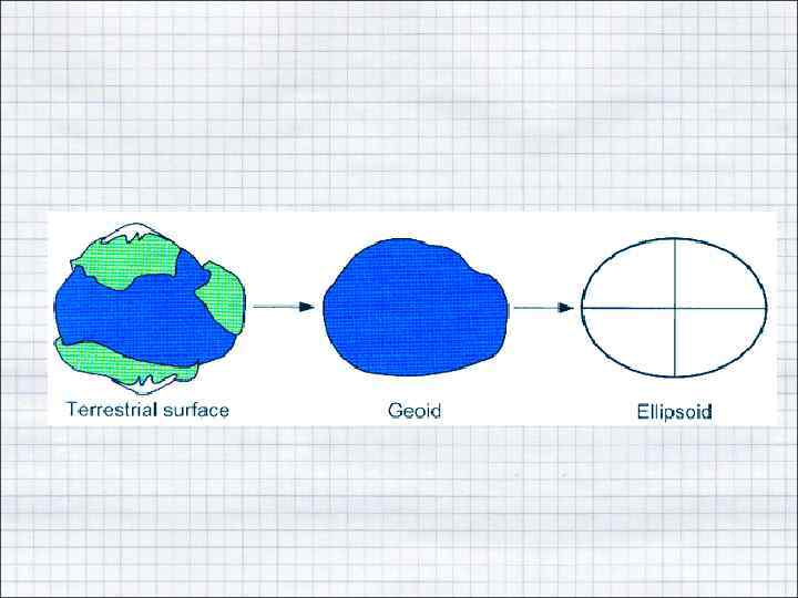 • В геодезии системы координат задают на поверхности эллипсоида вращения, потому что из простых математических поверхностей она ближе всего подходит для приближения поверхности Земли. Поверхность такого эллипсоида принято называть поверхностью относимости.