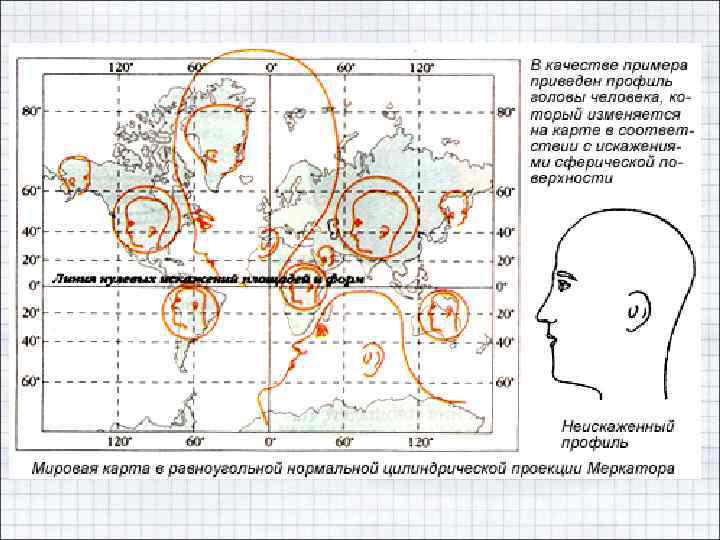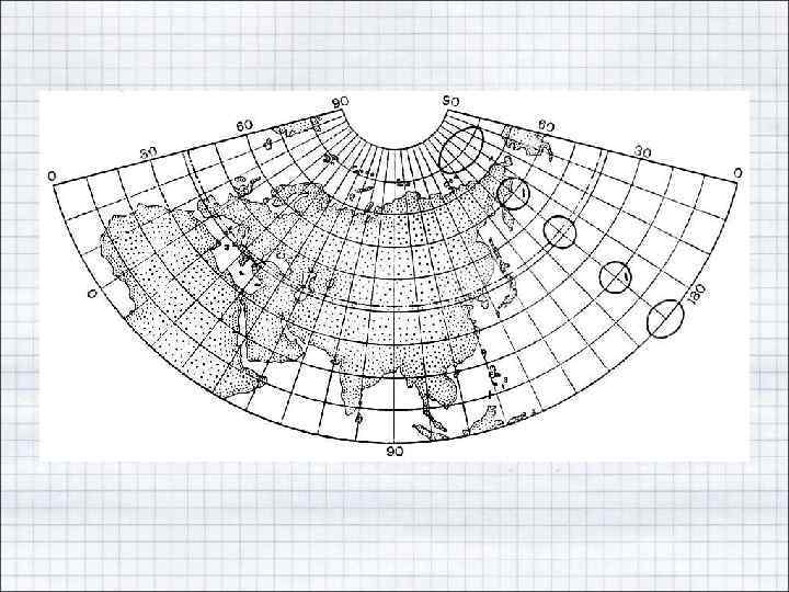 • Если в какой-либо проекции меридианы и параллели на карте пересекаются под прямым углом, то их направления и есть главные для данной проекции. • Искажения длин в данной точке проекции наглядно представляет эллипс искажений (ЭИ).