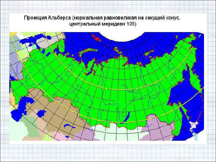 • При этом возможно некоторое нарушение определяющих условий этих проекций, не приводящее к ощутимым погрешностям, т. е. допустим выбор произвольных проекций, из которых чаще применяют проекции равнопромежуточные по меридианам. К последним прибегают и тогда, когда назначением карты вообще не предусмотрено сохранение углов или площадей.