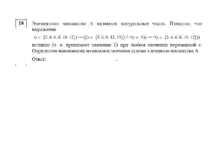 № 2 На числовой прямой даны два отрезка: P = [5, 15] и Q = [12, 18]. Выберите такой отрезок A, что формула ( (x А) → (x P) ) / (x Q) тождественно истинна, то есть принимает значение 1 при любом значении переменной х. 1) [3, 11] 2) [2, 21] 3) [10, 17] 4)[15, 20] [0; 4] [19; ∞]