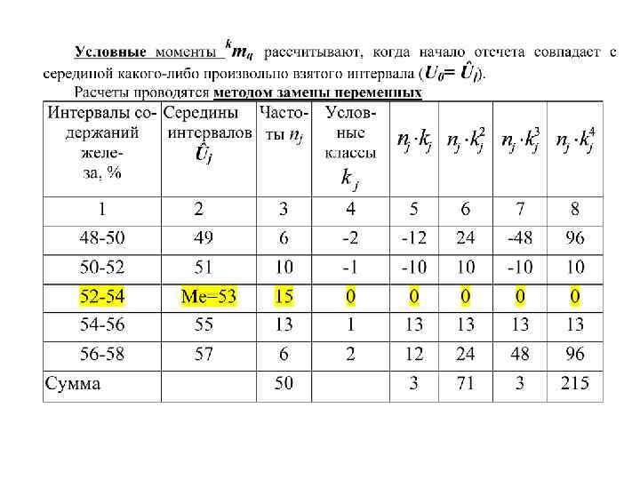 Класс содержаний, %(границы классов) Середины классов Накопленные частоты Частости 30 -32 31 2 2 0, 013605 62 32 -34 33 6 8 0, 040816 198 34 -36 35 9 17 0, 061224 36 -38 37 14 31 0, 095238 38 -40 39 20 51 0, 136054 40 -42 41 25 76 0, 170068 42 -44 43 21 97 0, 142857 44 -46 45 17 114 0, 115646 46 -48 47 13 127 0, 088435 48 -50 49 10 137 0, 068027 50 -52 51 5 142 0, 034014 52 -54 53 3 145 0, 020408 54 -56 55 2 147 0, 013605 Сумма Cj Число проб (частота) Накоплен- Произвед ные ения частости nj 147 1