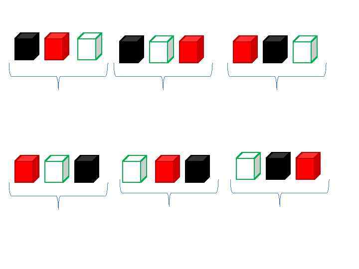 В коробке имеется 3 кубика: чёрный, красный и белый. Вытаскивая кубики наугад, мы ставим их последовательно друг за другом. Какова вероятность того, что в результате получится последовательность: красный, чёрный, белый? Решение: Сколько всего возможно результатов опыта? n=6 Пусть Ч – черный кубик, К – красный кубик, Б – белый кубик, тогда ЧКБ, ЧБК, БЧК, БКЧ, КЧБ, КБЧ. Ответ:
