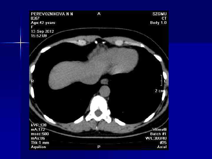 Мультиспиральная КТ n В последние годы стала использоваться мультиспиральная (мультисрезовая) КТ, в основу которой положены принципы получения изображений как при спиральной КТ, но за счет многорядных детекторов за полный оборот системы "трубка-детекторы" можно воспроизводить более одного среза (в настоящий момент от 2 до 64 изображений), что значительно увеличивает скорость исследования. В связи с этим возможно проведение исследований сердца, обследование большой анатомической области, например легких, тонкими срезами на одной задержке дыхания, существенное улучшение качества мультипланарных и трехмерных реконструкций. Рентгеновская трубка Получение от 2 до 256 срезов за 1 оборот трубки (0, 3 -0, 7 сек) Несколько рядов детекторов
