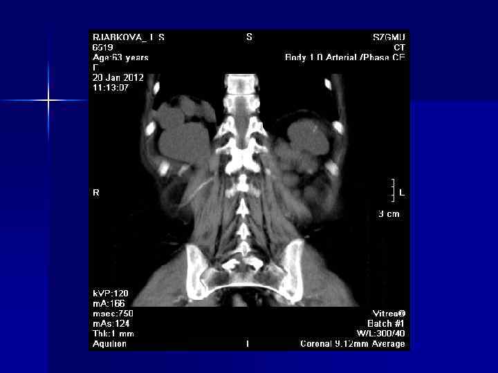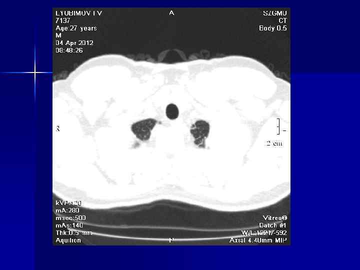 Проведение обследования n Обследование одной анатомической области методом МРТ включает в себя выполнение нескольких так называемых импульсных последовательностей. Различные импульсные последовательности позволяют получить специфические характеристики тканей человека, оценить относительное содержание жидкости, жира, белковых структур или парамагнитных элементов (железо, медь, марганец и др. ). n Стандартные протоколы МРТ включают Т 1 -взвешенные изображения (чувствительные к наличию жира или крови) и Т 2 -взвешенные изображения (чувствительные к отеку и инфильтрации) в трех плоскостях (аксиальной, сагиттальной и фронтальной). n Структуры, практически не содержащие протонов (кортикальная кость, кальцификаты, фиброзно-хрящевая ткань), а также артериальный кровоток имеют низкую интенсивность сигнала и на Т 1 -, и на Т 2 -взвешенных изображениях.