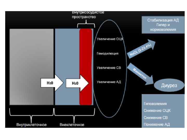 Вторая группа • Возвышенное положение (30°) головы и туловища (только при стабильном АД и нормальном ОЦК) • Использование умеренной гипервентиляции, применение диуретиков (Фуросемид (лазикс) в дозе 0, 5 -1 мг/кг; болюсное введение маннитола (по последним данным не рекомендован) доза от 1, 0 до 0, 25 г/кг ); применение гипертонического раствора Na. Cl [Ошоров] • Профилактическое использование гипервентиляции (р. СО 2 35 mm. Hg) в течение первых 24 часов после тяжелой ЧМТ, требует тщательного мониторинга газового состава крови поскольку может привести к ухудшению церебральной перфузии
