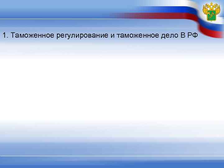 1. Таможенное регулирование и таможенное дело В РФ