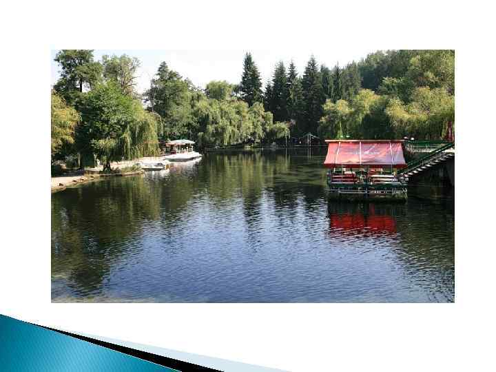 Водоем-постоянное или временное скопление стоячей или со сниженным стоком воды в естественных или искусственных впадинах. Водоемы и водные устройства в парках используются как средство оздоровления природной среды, эстетического обогащения ландшафта и создания полноценных мест отдыха. Значительные по величине водоемы являются композиционной основой- ядром парка, влияющим на архитектурнопланировочное решение в целом.