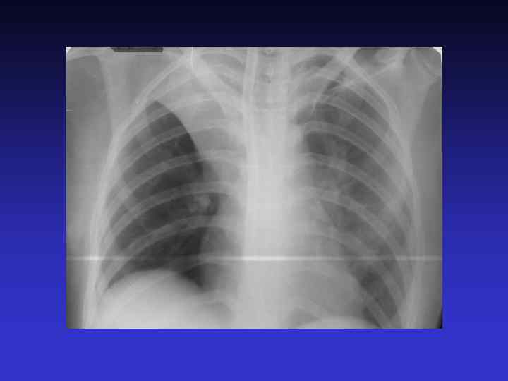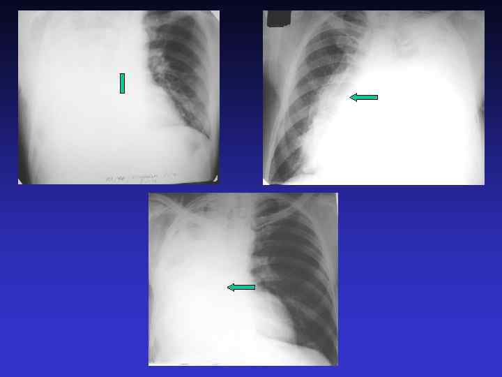 Пневмоторакс газ в плевральной полости Симптомы: - просветление без легочного рисунка - виден край коллабированного легкого