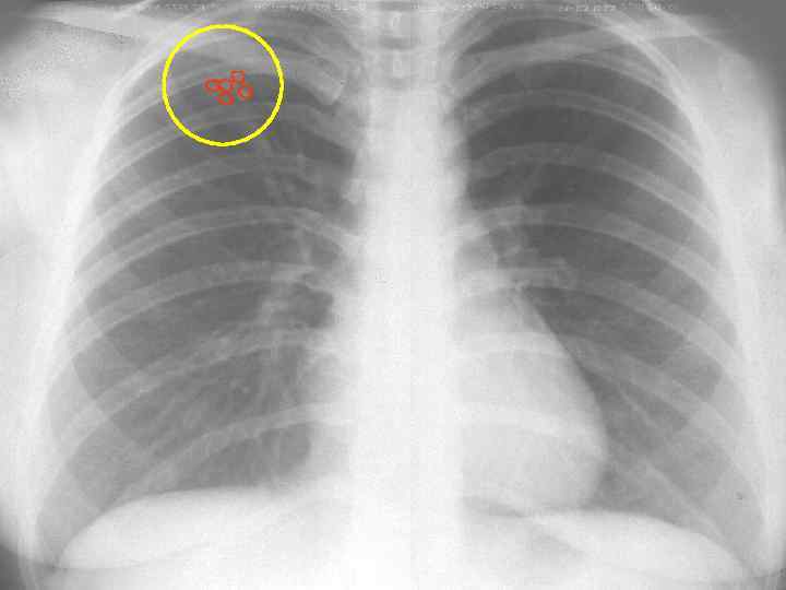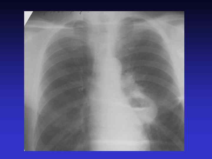 КОЛЬЦЕВИДНАЯ ТЕНЬ В ФОРМЕ КОЛЬЦА (ОБОДКА) С ЗАМКНУТЫМИ КОНТУРАМИ причины: - воздушная киста - каверна - дренированный абсцесс - распадающийся периферический рак легкого