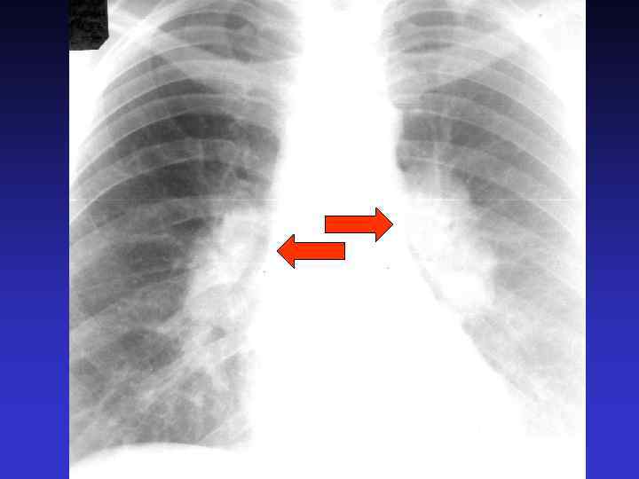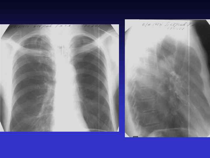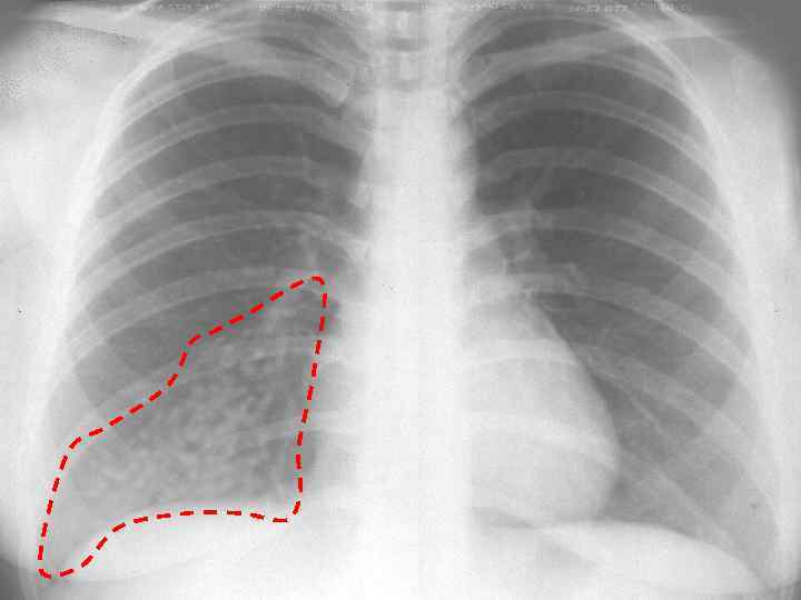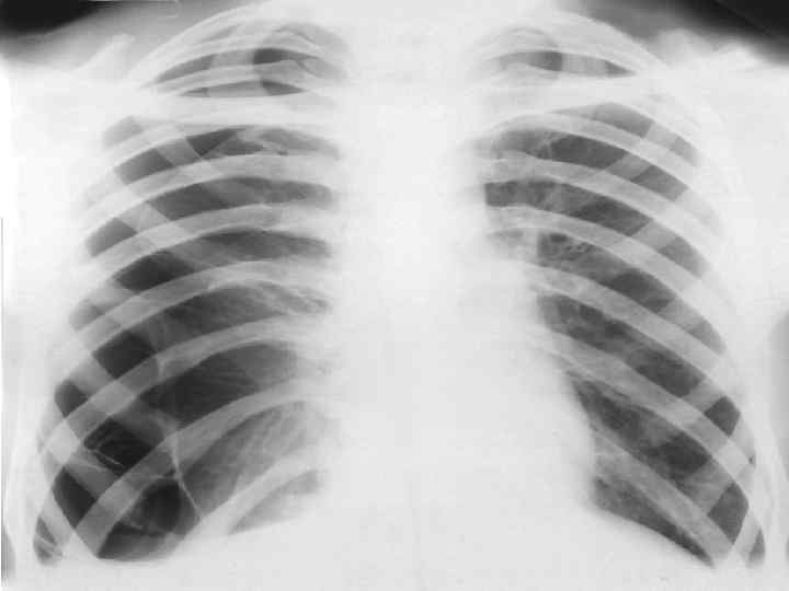 ТОТАЛЬНОЕ И СУБТОТАЛЬНОЕ ЗАТЕМНЕНИЕ Причины: - воспалительный заболевания легких (пневмония, туберкулез) - жидкость в плевральной полости; - ателектаз; - отек; - цирроз; - опухоль; - фиброторакс (только для тотального)