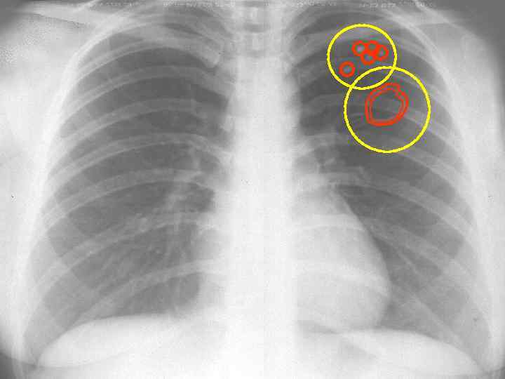 ОКРУГЛАЯ ТЕНЬ причины: - опухоль - туберкулома - недренированный абсцесс - киста