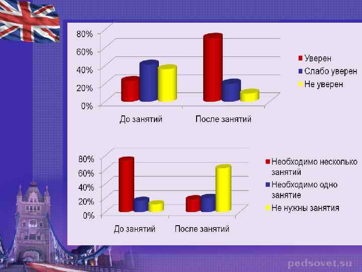 ОПРОС УЧАЩИХСЯ Вопрос 1 «Насколько Вы уверены в своих знаниях по теме «Словообразование? » До После • Уверен в своих знаниях – 23% Уверен в своих знаниях – 71% • Слабо уверен – 41% Слабо уверен – 20% • Абсолютно неуверен – 36% Абсолютно неуверен – 9% • Вопрос 2 «Необходимы ли Вам дополнительные занятия по этой теме? » До • Мне необходимы дополнительные занятия – 73% • Мне необходимо максимум одно дополнительное занятие – 16% • Мне не нужны дополнительные занятия – 11 % После • Мне необходимы еще дополнительные занятия – 18 % • Мне необходимо максимум одно дополнительное занятие – 20% • Мне не нужны дополнительные занятия – 62% • Вопрос 3 «Помогли ли вам дополнительные материалы с использованием данных материалов? » • Мне помогли дополнительные занятия – 75% • Мне помогли дополнительные занятия частично – 18% • Мне не помогли дополнительные занятия – 7% •