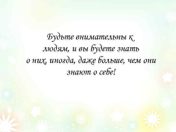 Будьте внимательны к людям, и вы будете знать о них, иногда, даже больше, чем они знают о себе!