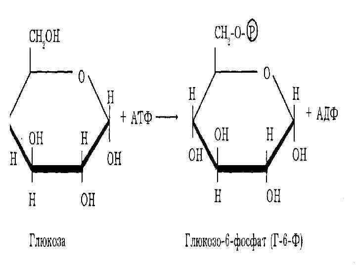 глюкоза + АТФ Глюкокиназа (Гексокиназа) глюкозо 6 фосфат + АДФ: