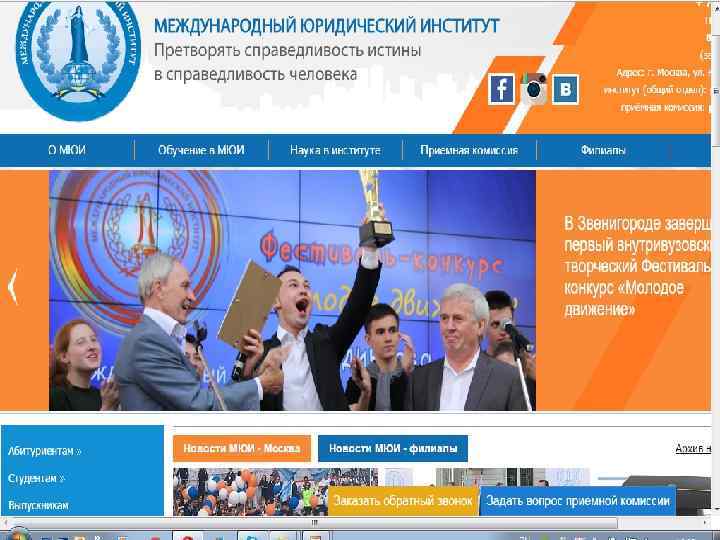 Функции Центра ДОТ с 12. 09. 2016 г. для организации учебных занятий с применением дистанционных образовательных технологий (ДОТ) в Международном юридическом институте создан Центр дистанционных образовательных технологий. Сотрудники Центра. Директор центра – Коваль Анатолий Васильевич, 8 495 935 82 54 (доп. 141) – почта – avkov 65@mail. ru. Заместитель директора – Каночкина Надежда Юрьевна, 8 495 935 82 54 (доп. 103) – Заведующий отделом технического сопровождения электронно-информационных средств – Бокарев Сергей Анатольевич 8 495 935 82 54 (доп. 114) В ведение Центра ДОТ входят вопросы: организация и проведение всех видов учебных занятий (лекции, ПЗ, Консультации), текущий и промежуточный контроль (экзамены, зачеты, защита курсовых работ); фиксирование результатов обучения и оформление экзаменационных ведомостей; проведение дополнительных учебных мероприятий; консультирование обучающихся по учебным вопросам и техническому обеспечению занятий. Для решения данных вопросов обращаться по вышеуказанным телефонам или на почту mirapolis@lawinst. ru.