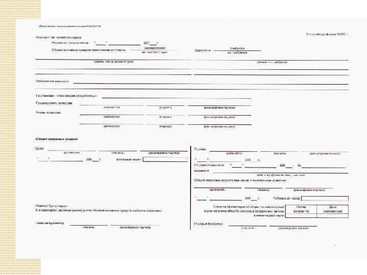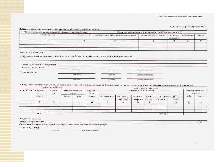Поступление основных средств ОСНОВНЫЕ СРЕДСТВА ПОСТУПАЮТ В ОРГАНИЗАЦИЮ: 1. ОТ УЧРЕДИТЕЛЕЙ В СЧЕТ ВКЛАДА В УСТАВНЫЙ КАПИТАЛ; 2. В РЕЗУЛЬТАТЕ СТРОИТЕЛЬСТВА ЛИБО СОЗДАНИЯ СОБСТВЕННЫМИ СИЛАМИ; 3. ПУТЕМ ПРИОБРЕТЕНИЯ ЗА ПЛАТУ; 4. ПУТЕМ БЕЗВОЗМЕЗДНОЙ ПЕРЕДАЧИ.
