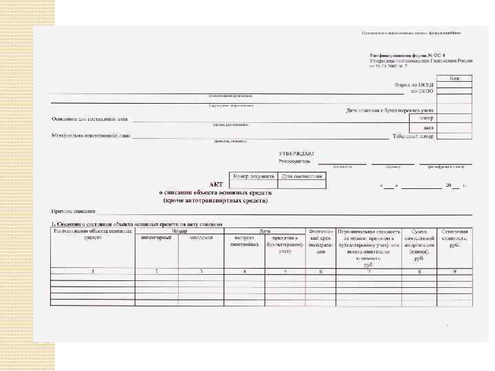Выбытие (списание) основных средств Основные средства выбывают из организации в случаях: a) списания по причине непригодности к дальнейшему использованию; b) продажи на сторону; c) безвозмездной передачи; d) передачи в счет вклада в уставный капитал другой организации; e) хищения (недостачи); f) гибели вследствие чрезвычайной ситуации.