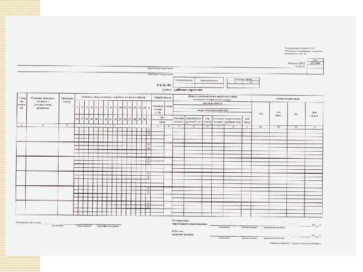 Учет рабочего времени Для учета рабочего времени при повременной (тарифной) системе оплаты труда применяют унифицированные формы Табеля учета рабочего времени (унифицированные формы № Т-12, № Т-13) Форма Т-12 применяется, если учет ведут ручным методом, Т-13 - если автоматизировано. В Табеле указывают количество явок и неявок (и их причин) сотрудника на работу, сведения о сверхурочных работах, отпусках, командировках, простоях и т. д. Табель учета рабочего времени является основанием для начисления заработной платы сотрудникам. Заработная плата работника рассчитывается исходя из тарифной ставки(оклада) за фактически отработанное время. Тарификация работ производится согласно положениям единого Тарифно-квалификационного справочника работ, который разрабатывается и внедряется Постановлением Министерства труда. Повременная система оплаты труда обычно применяется при оплате труда руководящего персонала организации, работников вспомогательных производств, а также лиц, работающих по совместительству. При сдельной системе оплаты труда оплата работ производится на основании Наряда на сдельные работы, Табеля-расчета, Наряда-книжки, маршрутных листов и других аналогичных документов. При комиссионной системе оплаты труда - основанием для расчетов служат сведения о выручке организации и размере процента, установленного в трудовом договоре сотрудника.