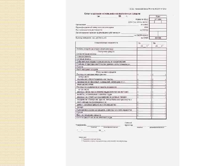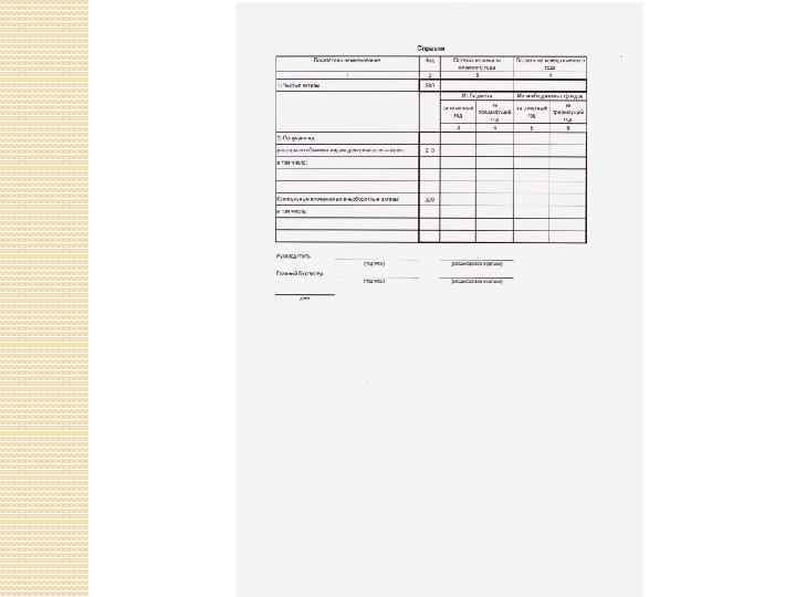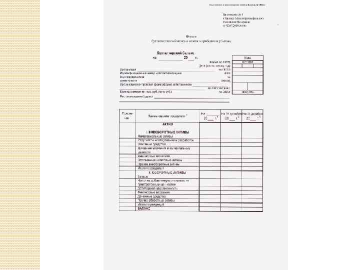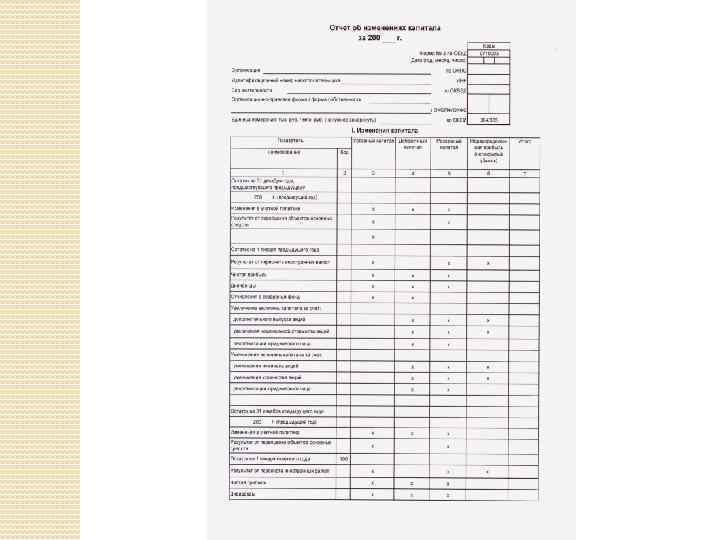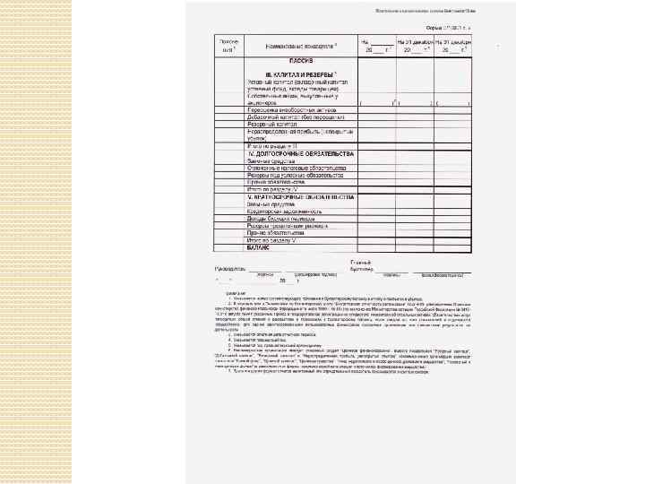 Бухгалтерская отчетность состоит из: 1. Форма № 1 Бухгалтерский баланс 2. Форма № 2 Форма № 3 Форма № 4 Форма № 5 Форма № 6 полученных Отчет о прибылях и убытках Отчет об изменениях капитала Отчет о движении денежных средств Приложение к бухгалтерскому балансу Отчет о целевом использовании средств 3. 4. 5. 6.