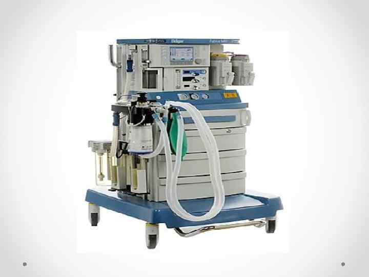 Аппаратура для ингаляционного наркоза. • Наркозный аппарат – многофункциональный медицинский прибор, с помощью которого обеспечивается: 1) дозированная подача в дыхательные пути ингаляционных анестетиков, кислорода или воздуха, 2) удаление углекислого газа из выдыхаемой газовой смеси, 3) вспомогательная или искусственная вентиляция легких, и 4) поддержание необходимой влажности и температуры вдыхаемой газонаркотической смеси.