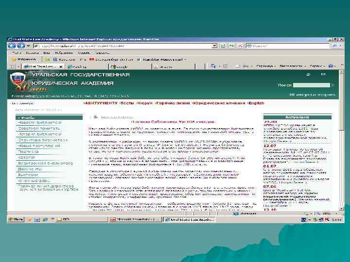 АБИС «ИРБИС» Вся работа по созданию и использованию электронной библиотеки НБ Ур. ГЮА ведётся на базе Автоматизированной библиотечной информационной системы «Ирбис»