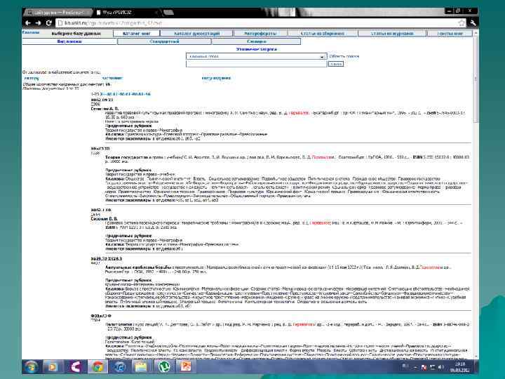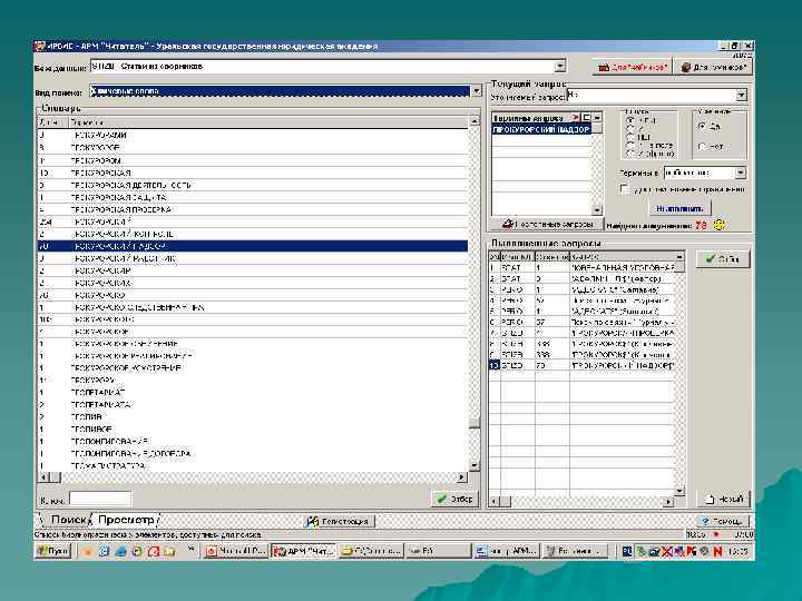 АРМ «Читатель» позволяет просматривать каталоги баз данных НБ Ур. ГЮА