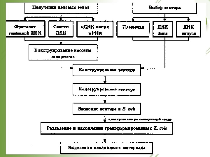 Словарь Экспрессия гена – появление в клетках организмареципиента биологически активного генного продукта Кассета экспрессии – фрагмент ДНК, содержащий все необходимые элементы (промотор, терминатор) для экспрессии внедренного в него гена